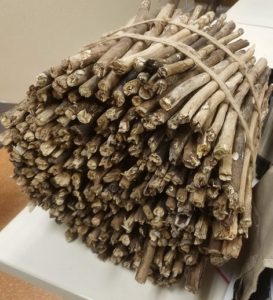 “Wood should be straight, about 12″ to 16″ long, no thinner than your little finger and no thicker than your thumb… the Scout gathers one cubic foot of dry, naturally barkless wood.”